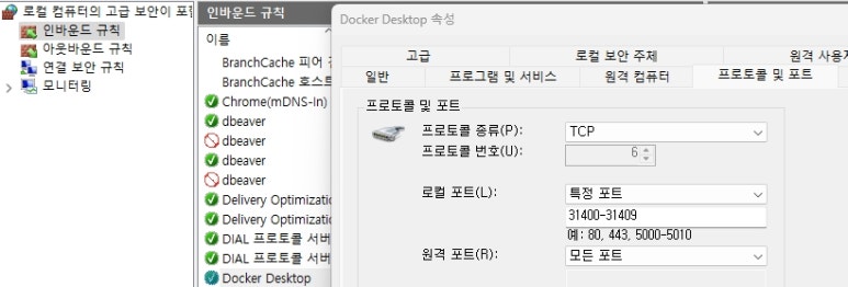 1) 찾기 창에 방화벽 검색 - 방화벽 상태 확인 선택 - 고급 선택 - 인바운드 규칙 - 새 규칙